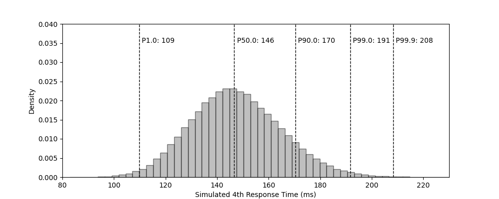 โ I need to comment on determinism. Given a systemโs fundamental operations, one way to model the execution of higher-level operations could be to simulate paths by drawing a percentile, on each fundamental operation in the call-path and transforming that percentile back to milliseconds. Of course, we need to simulate a path many times to get a stable result, but does that really matter? If we really need determinism for this type of exercise is still an open question. I donโt actually think so, but I wonโt let that stop me from writing this packageโฆ